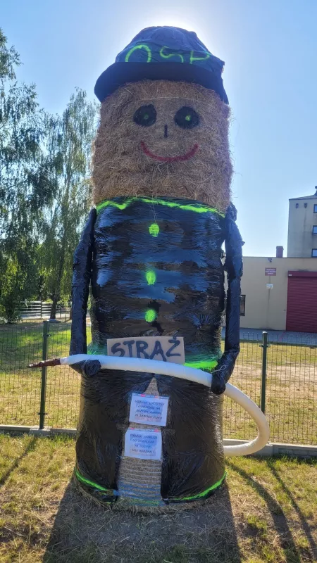 Odkryj witacz dożynkowy "Mariany" w gminie Kowalewo Pomorskie, ozdobiony symbolami rolnictwa.