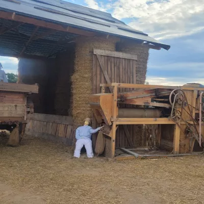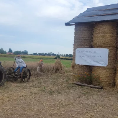 Odkryj witacz dożynkowy "Sierakowo" w gminie Kowalewo Pomorskie, ozdobiony symbolami rolnictwa.